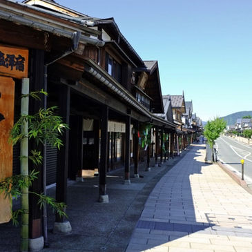 A charming historical street lined with traditional buildings, offering a glimpse into old-town Japan and local craftsmanship.