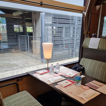 A luxury sightseeing train, featuring Japan’s largest windows for panoramic views of sea, mountains, and countryside—complete with a lounge car, a fine dining restaurant, and curated pairings of local sake, wine, and seasonal cuisine.